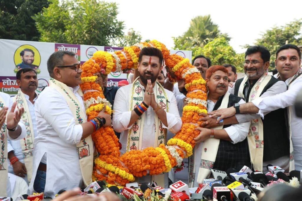 Patna. केंद्रीय मंत्री चिराग पासवान ने शनिवार को कहा कि उनकी पार्टी लोक जनशक्ति पार्टी (राम विलास) के प्रतिनिधियों ने बिहार के मुख्यमंत्री नीतीश कुमार से मुलाकात कर सत्तारूढ़ राष्ट्रीय जनतांत्रिक गठबंधन (राजग) की प्रचंड विजय पर उन्हें बधाई दी और राज्य में नई सरकार के गठन पर चर्चा की. उन्होंने विपक्षी पार्टी राष्ट्रीय जनता दल (राजद) और कांग्रेस पर यह कहते हुए हमला बोला कि वे लोजपा (रामविलास) और मुख्यमंत्री कुमार की पार्टी जनता दल यूनाइटेड (जदयू)के बीच “मतभेद होने का झूठा विमर्श” गढ़ रहे थे.