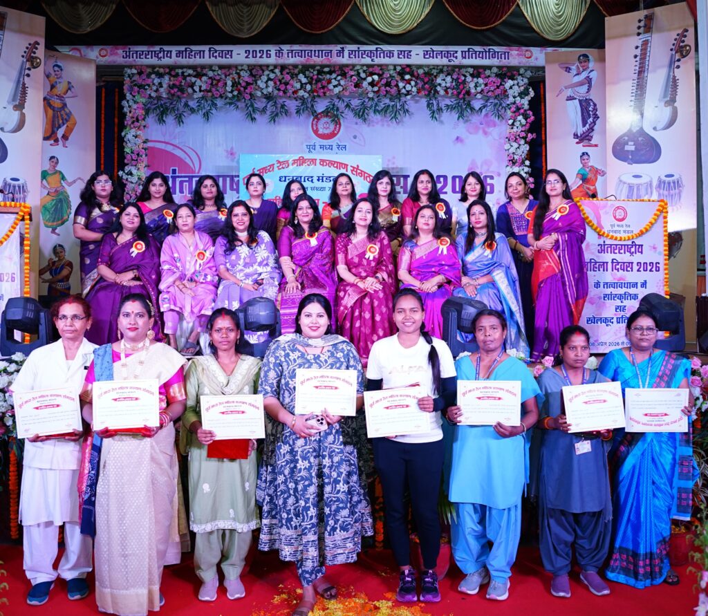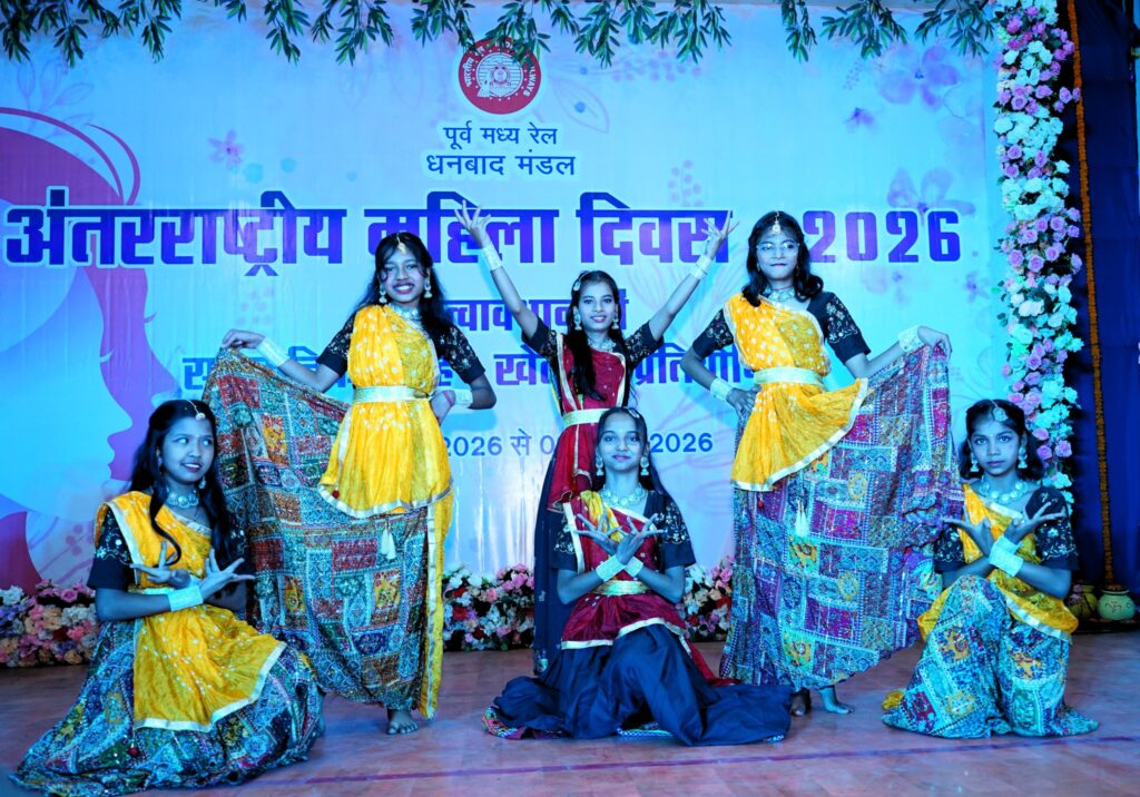 धनबाद (Indian Railways News): अंतरराष्ट्रीय महिला दिवस (International Women’s Day 2026) के उपलक्ष्य में पूर्व मध्य रेलवे (ECR) के धनबाद रेल मंडल में महिला सशक्तिकरण और नारी शक्ति के सम्मान की एक बेहद खूबसूरत झलक देखने को मिली। महिला कर्मचारियों को तनाव-मुक्त कार्यस्थल (Stress-free workplace) का माहौल प्रदान करने और उनकी प्रतिभा को निखारने के उद्देश्य से बुधवार (08 अप्रैल 2026) को रेलवे ऑडिटोरियम, धनबाद में एक भव्य ‘सांस्कृतिक-सह-खेलकूद प्रतियोगिता’ का आयोजन किया गया। इस कार्यक्रम में रेलवे के विभिन्न विभागों की महिला कर्मियों ने पूरे उत्साह के साथ अपनी प्रतिभा का उत्कृष्ट प्रदर्शन किया।