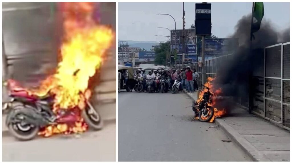 Jamshedpur. मानगो पुल पर मंगलवार को एक अपाचे बाइक में अचानक आग लग गई. मानगो मून सिटी के रहने वाले विवेक कुमार साकची की तरफ जा रहे थे. इसी दौरान उनकी बाइक से धुआं निकलने लगा. विवेक ने पास के नल से पानी लाकर आग बुझाने की कोशिश की. लेकिन आग तेजी से फैल गई. मिनटों में पांच साल पुरानी अपाचे बाइक पूरी तरह जल गई. घटना से पुल पर अफरातफरी मच गई और जाम की स्थिति बन गई.