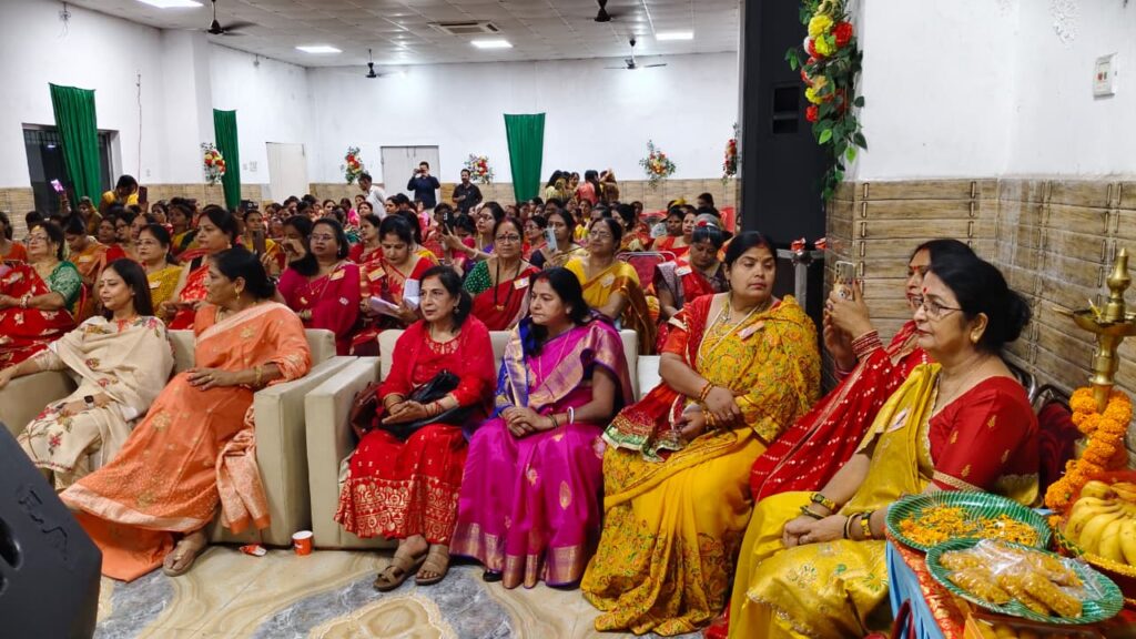 कार्यक्रम की शुरुआत मां जानकी की विधिवत पूजा-अर्चना के साथ हुई। पूनम झा और माला चौधरी के नेतृत्व में सभी मिथिलानी महिलाओं ने मिलकर पूजा संपन्न की। इसके बाद सामूहिक भगवती वंदना प्रस्तुत की गई, जिससे पूरा परिसर भक्ति में सराबोर हो गया।