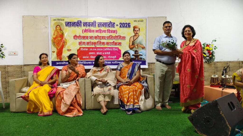 जमशेदपुर। मिथिला सांस्कृतिक परिषद द्वारा जानकी नवमी का आयोजन बड़े ही श्रद्धा और उल्लास के साथ किया गया। गोलमुरी स्थित विद्यापति परिसर में आयोजित इस कार्यक्रम में मैथिल समाज की महिलाओं ने बढ़-चढ़कर भाग लिया और पूरे वातावरण को भक्तिमय बना दिया।