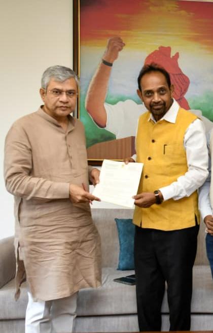 Jamshedpur। जमशेदपुर के सांसद Bidyut Baran Mahato ने गुरुवार को नई दिल्ली स्थित रेल भवन में केंद्रीय रेल मंत्री Ashwini Vaishnaw से मुलाकात कर चक्रधरपुर रेल मंडल में ट्रेनों की देरी और बढ़ते कंजेशन की गंभीर समस्या को प्रमुखता से उठाया।