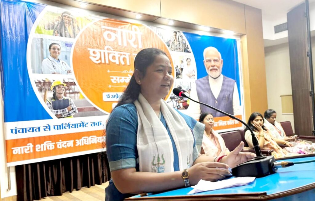 सम्मेलन को संबोधित करते हुए प्रदेश उपाध्यक्ष सह पूर्व सांसद गीता कोड़ा ने कहा कि नारी शक्ति वंदन अधिनियम भारत को अधिक समावेशी, संतुलित और दीर्घकालिक विकास की दिशा में आगे ले जाएगा। उन्होंने कहा कि वर्षों से तमाम राजनीतिक दलों ने महिलाओं को केवल वोट बैंक के तौर पर देखा, लेकिन उनका अधिकार किसी ने नहीं दिया। देश की आधी आबादी को उनका अधिकार प्रधानमंत्री नरेंद्र मोदी ने दिया है एवं सबके विकास में महिलाओं को भी जोड़ा। लोकतंत्र में महिलाओं को विधानसभा और लोकसभा में 33 प्रतिशत का आरक्षण दिया जाएगा। महिलाओं को 33 प्रतिशत आरक्षण देकर प्रधानमंत्री नरेंद्र मोदी ने पूरी नारी शक्ति का सम्मान किया है। यह अधिनियम विकसित भारत 2047 के लक्ष्य को हासिल करने में निर्णायक भूमिका निभाएगा।
