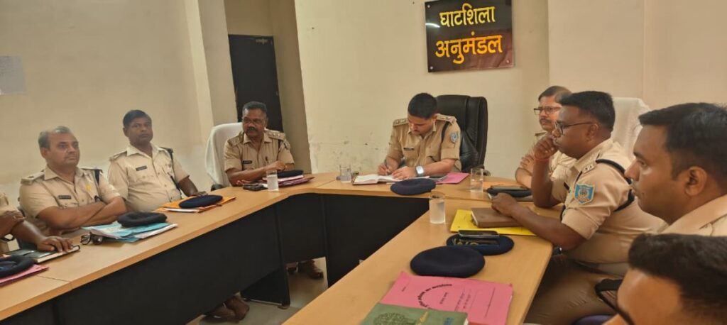 Jamshedpur. शनिवार को ग्रामीण पुलिस अधीक्षक द्वारा अनुमंडल पुलिस पदाधिकारी कार्यालय, घाटशिला मे समीक्षा बैठक की गई। इस बैठक में ग्रामीण क्षेत्र के सभी पुलिस उपाधीक्षक, पुलिस निरीक्षक और थाना प्रभारियों की उपस्थिति रही, जहाँ सुरक्षा व्यवस्था और कानून व्यवस्था को सुदृढ़ करने के लिए कई कड़े निर्देश जारी किए गए।आयोजित बैठक के दौरान ग्रामीण एसपी ने क्षेत्र में कानून व्यवस्था की स्थिति की गहन समीक्षा की। उन्होंने स्पष्ट निर्देश दिया कि जिले के विभिन्न थानों में लंबित कांडों, वारंट और कुर्की का निष्पादन प्राथमिकता के आधार पर और शीघ्रता से किया जाए।